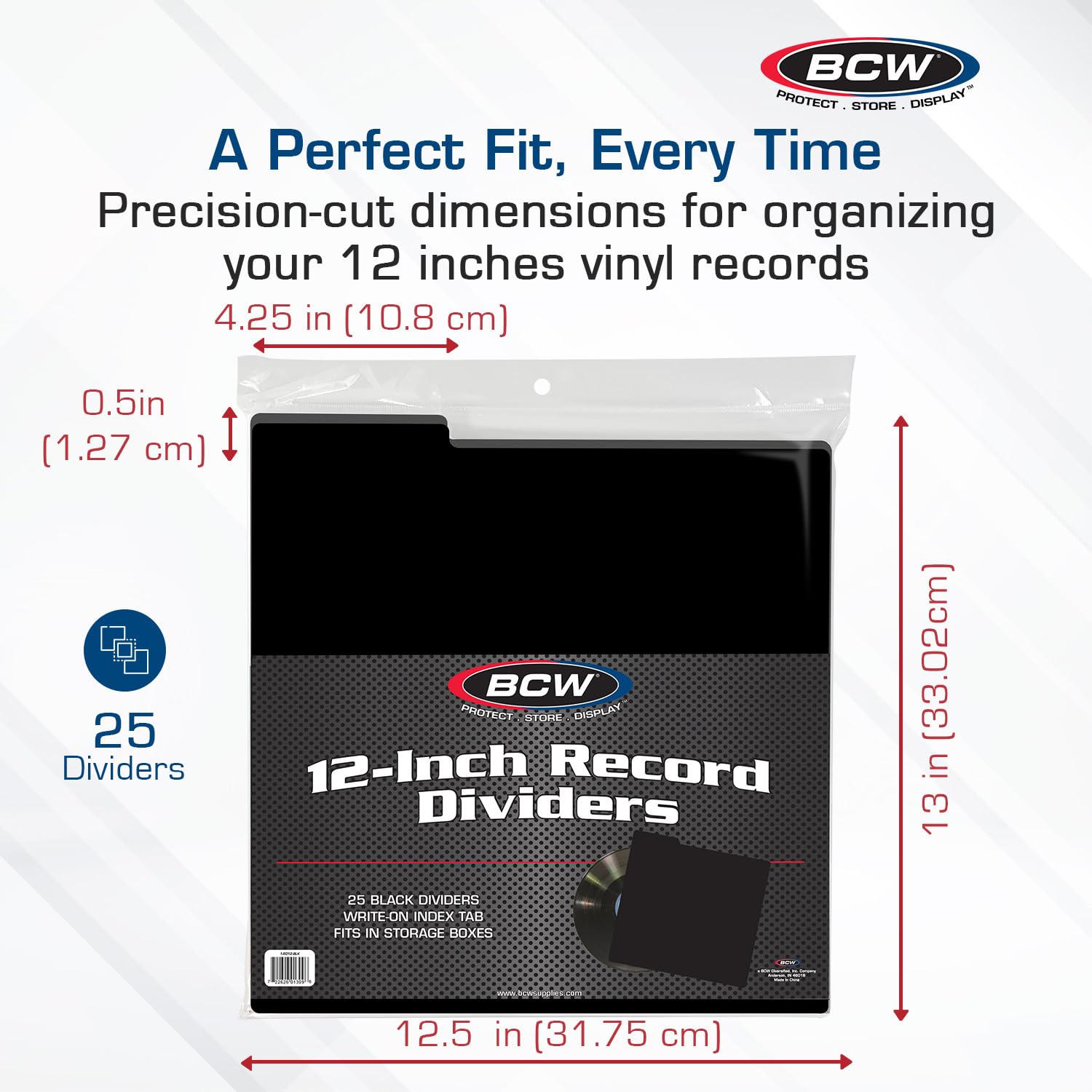 BCW 12-Inch Vinyl Record Dividers - 25 Pack | Archival Plastic for LP Storage - Black