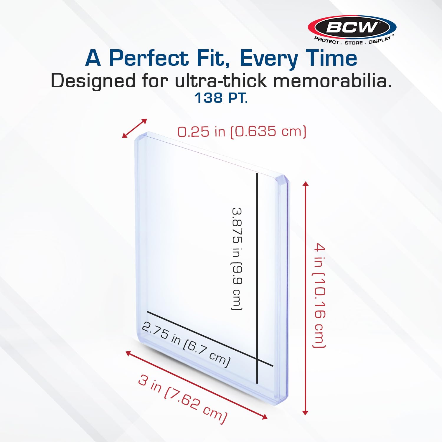 - Premium Protection: The BCW Thick Card Topload Holders are crafted to accommodate a variety of thicker cards, including special patch, jersey, swatch, relics, and memorabilia, these toploaders can handle up to 138 points in thickness