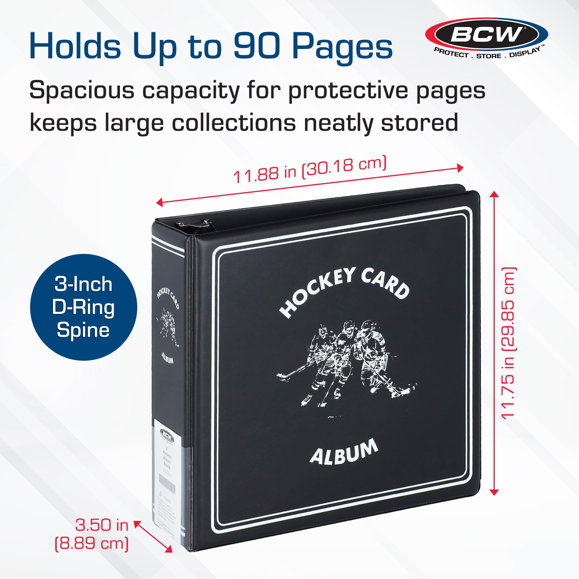 BCW 3" Hockey Card Binder | Black 3-Ring Album for Sports & Trading Card Collection | Holds Up to 90 Pages | Durable D-Ring Binder | Secure Trading Card Storage Organizer