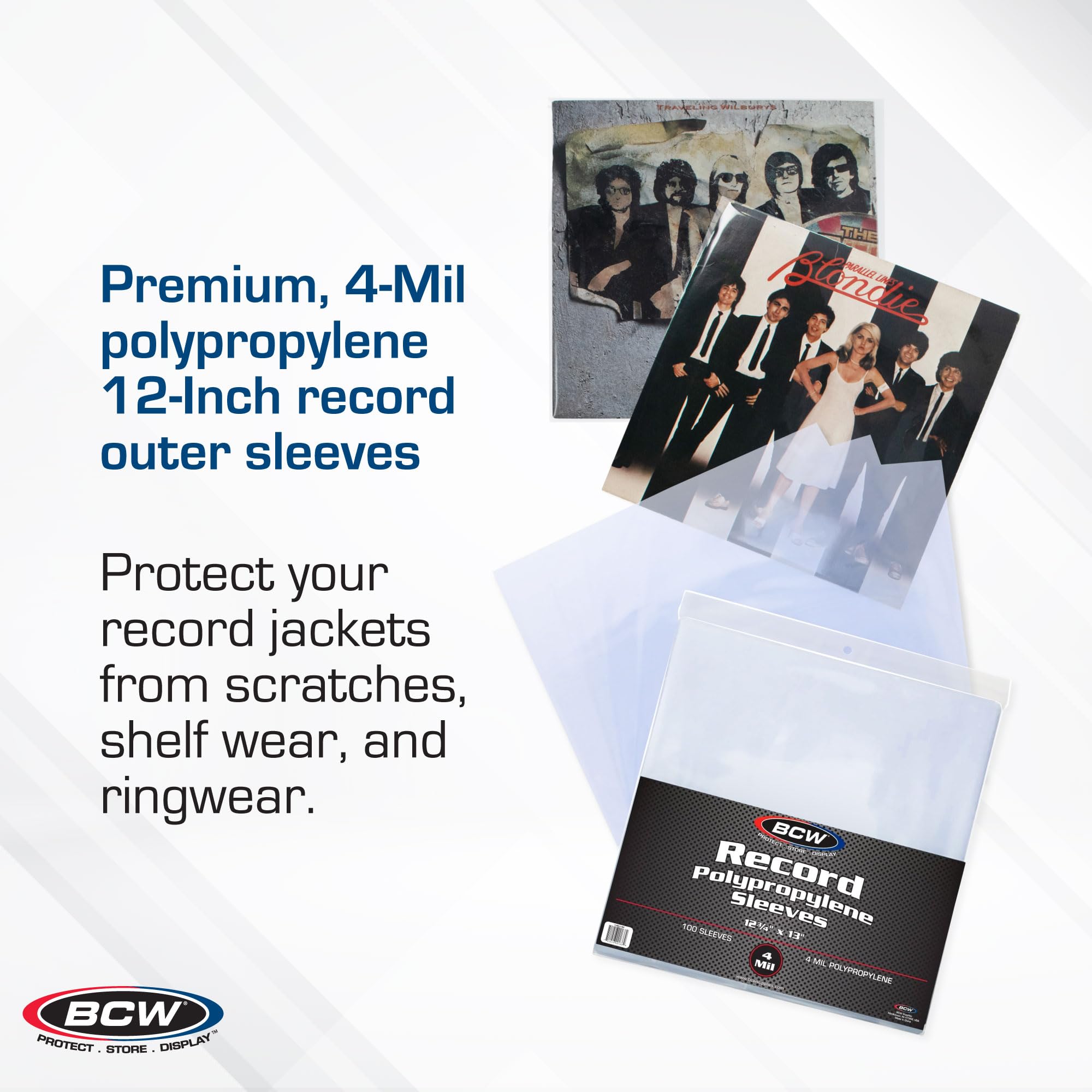 BCW 4 Mil Record Sleeves (12 Inch) - 100 ct | Clear Polypropylene Vinyl Album Protectors for 33 1/3 RPM | Archival Quality, Acid-Free | Premium Outer Sleeves for Storage of Your Vinyl Collection—