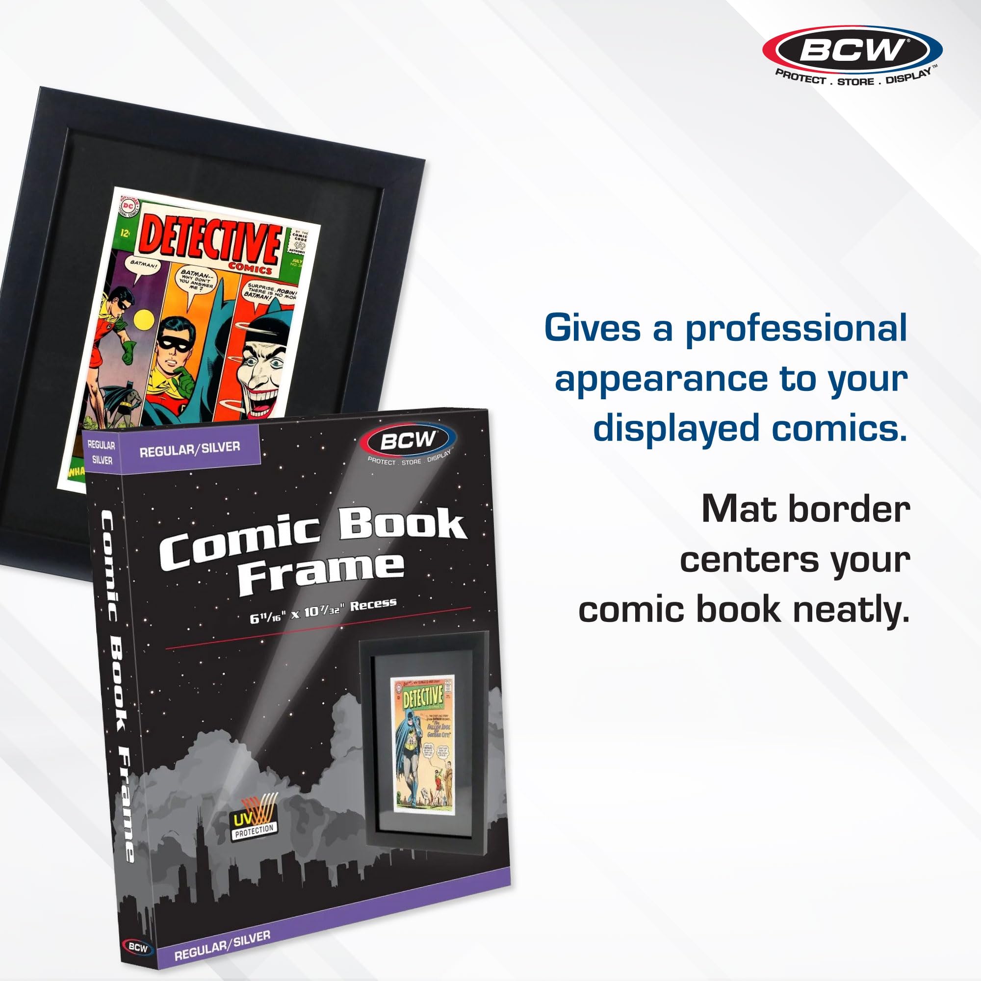 - Sleek Design: Black wood frame with a clear polycarbonate front enhances the display of your comic books while protecting them from dust and damage.