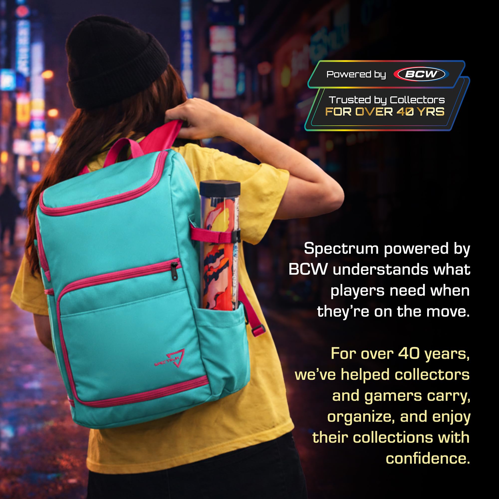 BCW Spectrum TCG Backpack | Holds 7–9 Prism Deck Cases | Configurable Storage for Cards & Gear | Playmat Strap & Side Pocket | Durable & Travel-Friendly Design | Cyber Pink/Teal