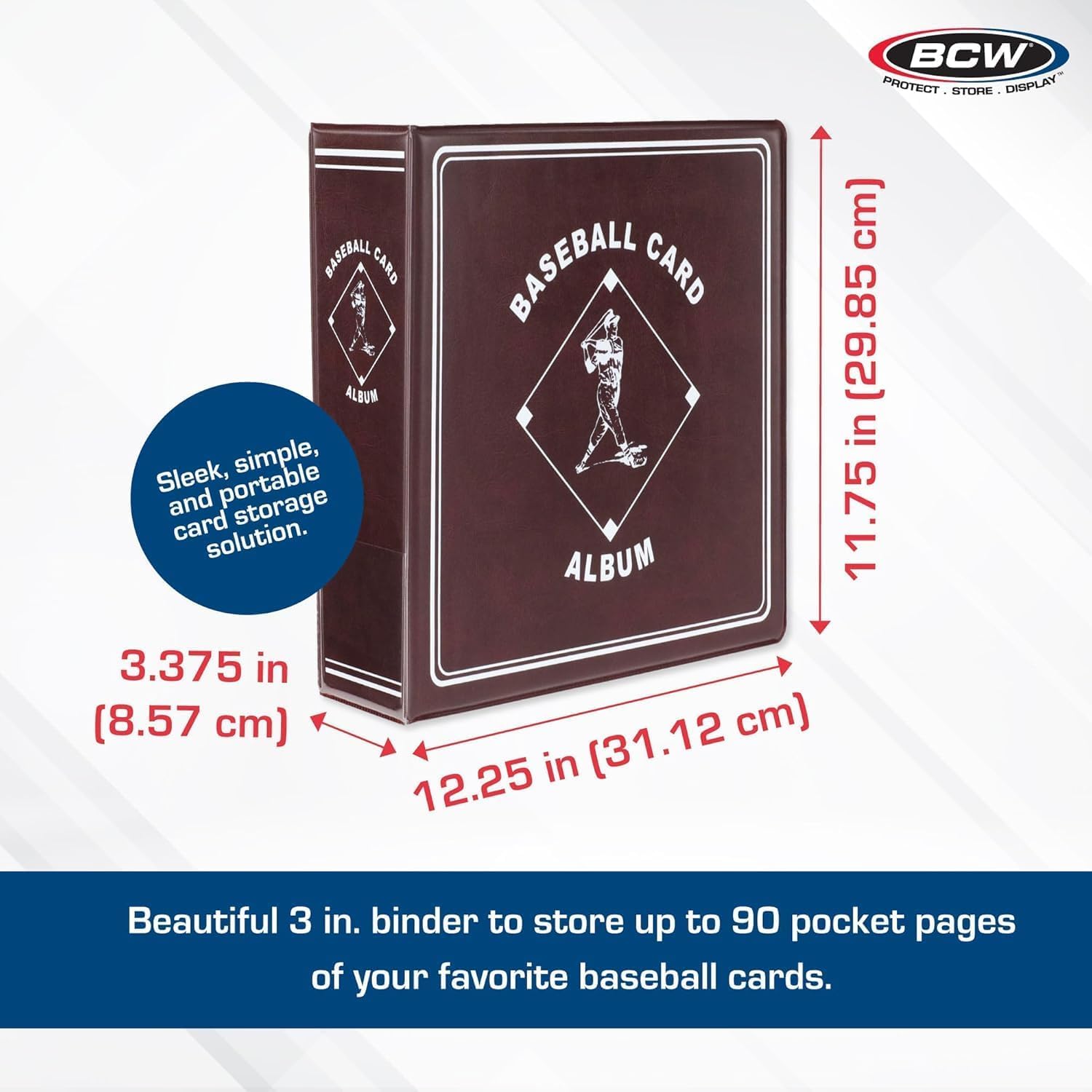 BCW Supplies 3" Baseball Album - Burgundy | Durable Binder for 90 Baseball Cards | Ideal for Collectors, Storage, and Card Protection - 2 Pack