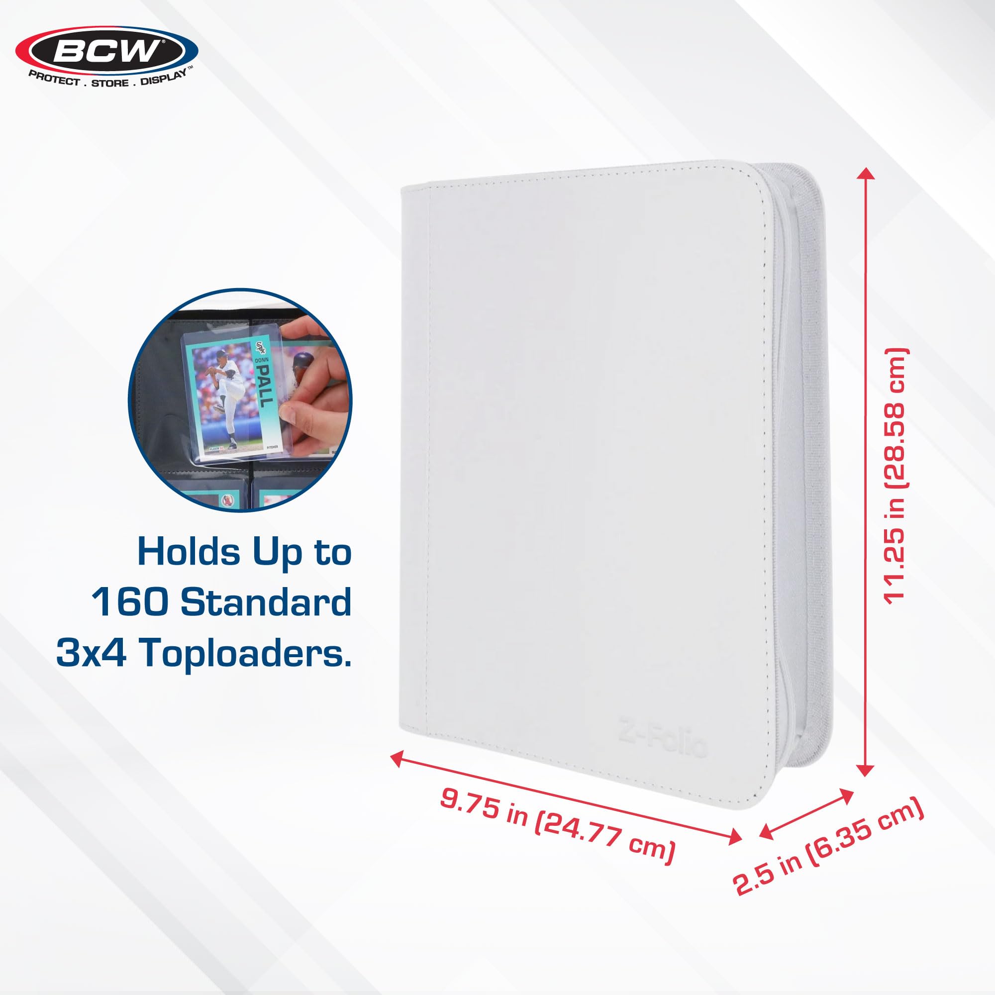 BCW Z-Folio 4-Pocket LX Album – White | Holds 160 Standard Toploaders | Side-Loading, Acid-Free Pages for Trading & Sports Cards